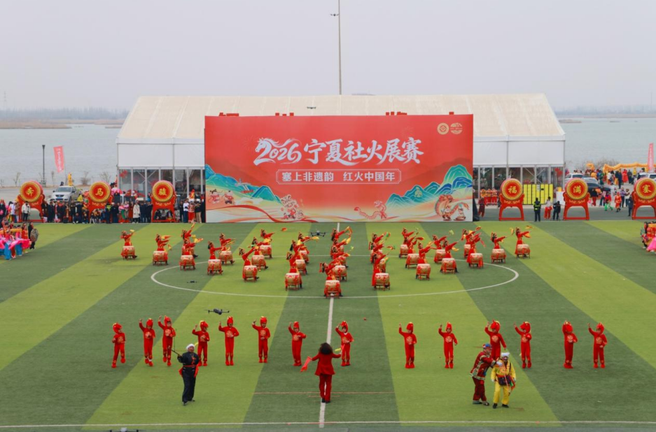 当天,“塞上非遗韵 红火中国年”2026年宁夏社火展赛同步举办,来自全区的22支优秀社火队伍集中亮相、巡回展演,以热闹喜庆的传统民俗,全面展现新时代塞上儿女昂扬向上的精神风貌。