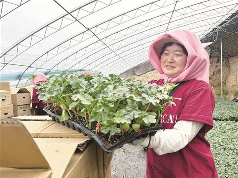 在丰盈农业育苗基地里,负责人王军穿梭于种苗之间,仔细检查嫁接情况。“我们从1月15日开始育苗,计划培育1180多万株,其中硒砂瓜苗600多万株、西红柿苗300万株、香瓜苗180万株、甘蓝苗100多万株。”王军介绍。目前,香瓜苗已售出160万株,硒砂瓜苗也已陆续上市,销路很好。