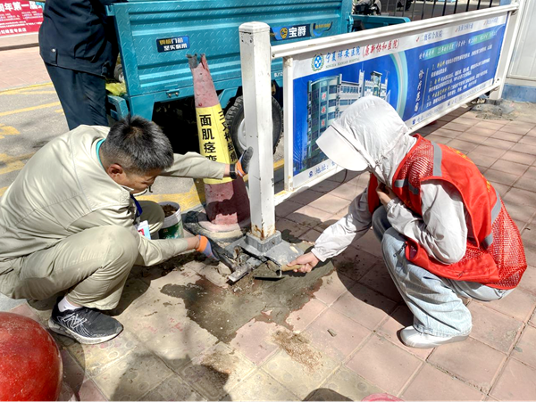 华新社区为破损路面“补妆”美颜