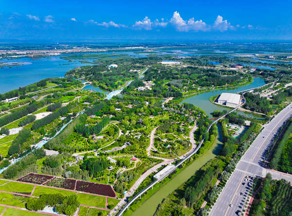 7月20日,银川花博园,湖景与绿植勾勒出一幅美丽的生态画卷。 记者 马楠 摄