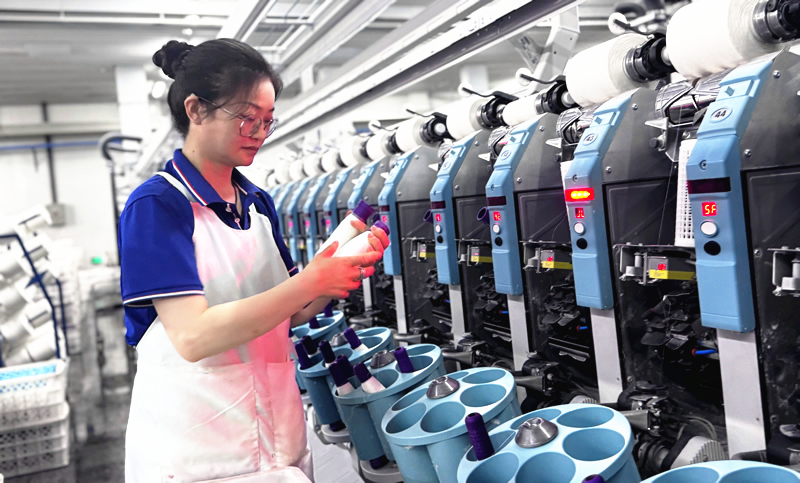 在宁夏舜昌亚麻纺织科技有限公司络筒车间内,络筒女工李董转只需在设备屏幕上轻点几下,络筒机便自动流畅运转。“以前工人不仅要填纱,还要收纱,如今设备改造升级后,劳动强度大大减轻”,李董转的语气里透着轻松。