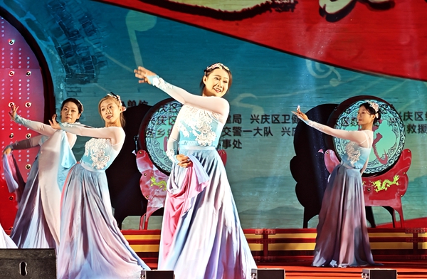 此时,“天幕为卷 汉印千年”无人机烟花秀将活动推向高潮。1500架无人机以深邃天幕为画布,在烟花与灯光的交相辉映下,勾勒出贺兰山等元素,为观众与游客绘制一幅以“盛世华诞 梦回兴庆”为主题的时代画卷。后续的文艺演出同样精彩,舞蹈、歌曲、杂技等各类节目轮番上阵,赢得阵阵掌声。