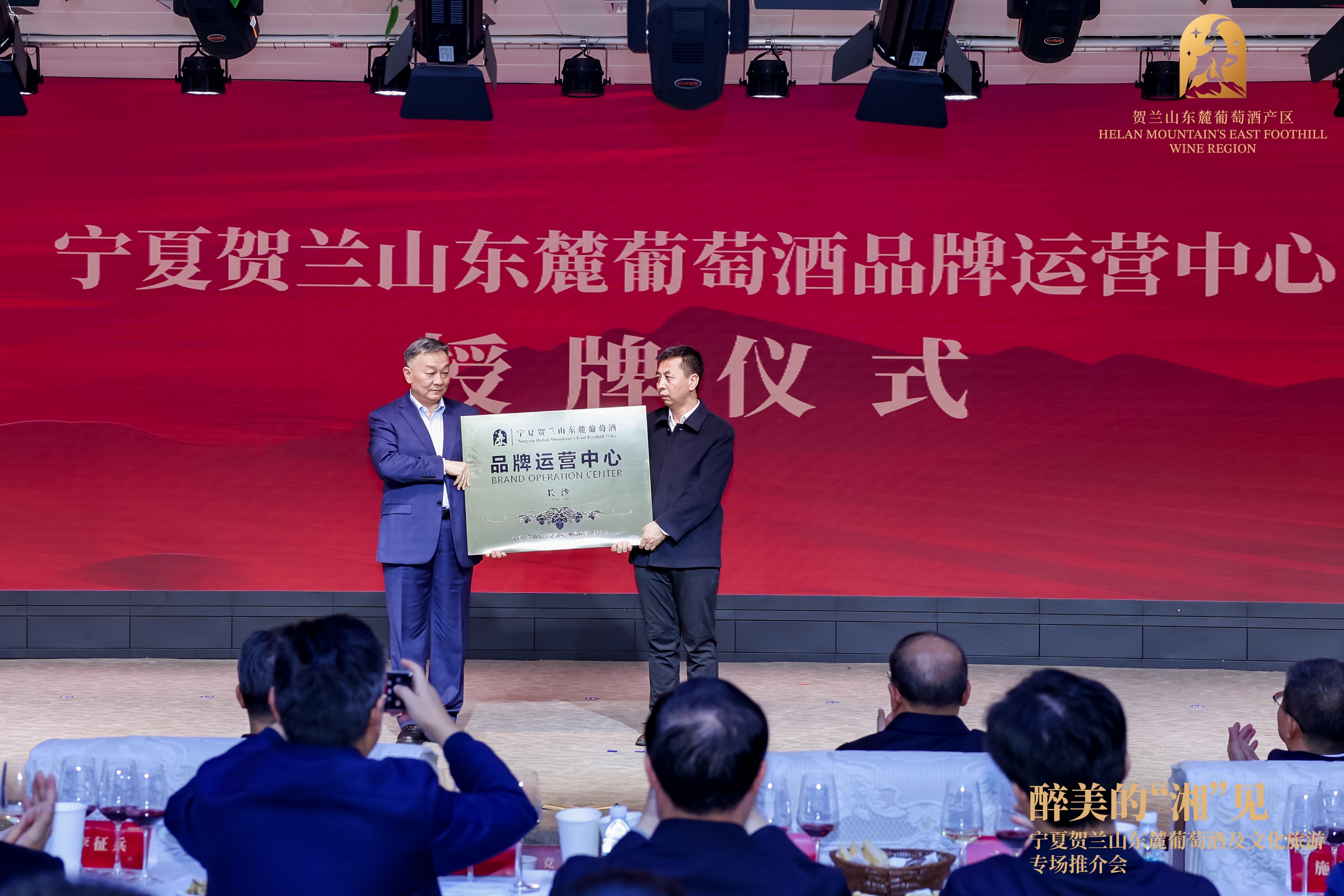 宁夏新闻网讯(记者 朱敏 文/图/视频)1月17日,“醉美的‘湘’见——宁夏贺兰山东麓葡萄酒及文化旅游专场推介”活动在湖南长沙举行。推介活动中,宁夏贺兰山东麓葡萄酒产业园区管委会授予宁品入湘(湖南)商务服务有限公司的“宁夏贺兰山东麓葡萄酒品牌运营中心”正式揭牌。该中心汇聚近20家宁夏精品酒庄佳酿,将成为湖南消费者深入了解宁夏风土、体验贺兰山东麓葡萄酒文化的重要平台。