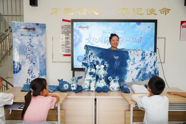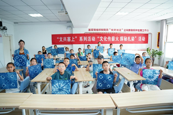 宁夏新闻网讯(记者 夏欣 文/图)7月23日下午,宁夏图书馆与居安家园社区服务网点联合开展“文化传薪火 探秘扎染”活动。40余名青少年化身“非遗小匠人”,在扎染传承人尹小兰的指导下亲手创作靛蓝艺术品,开启了一场跨越千年的非遗文化沉浸之旅。