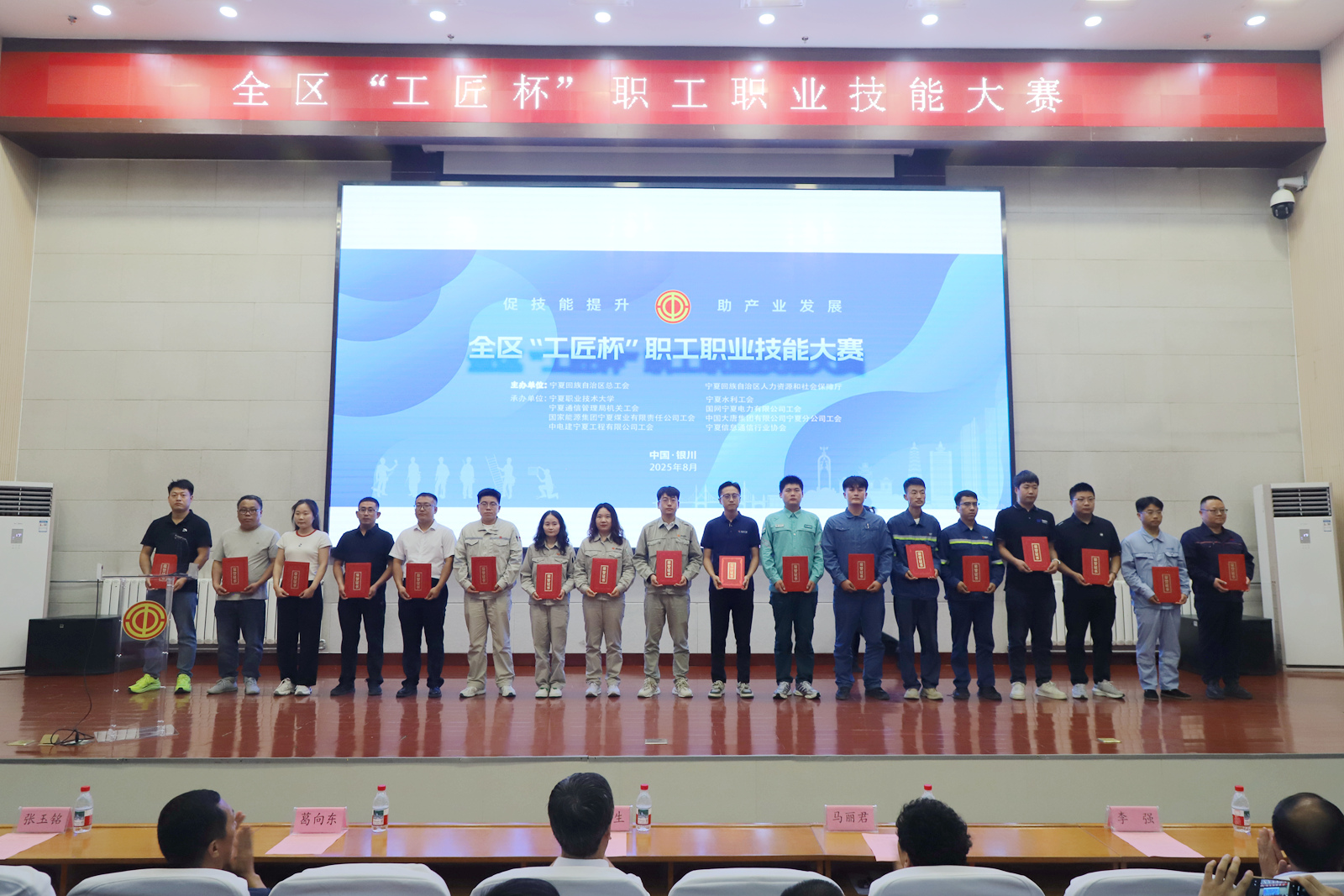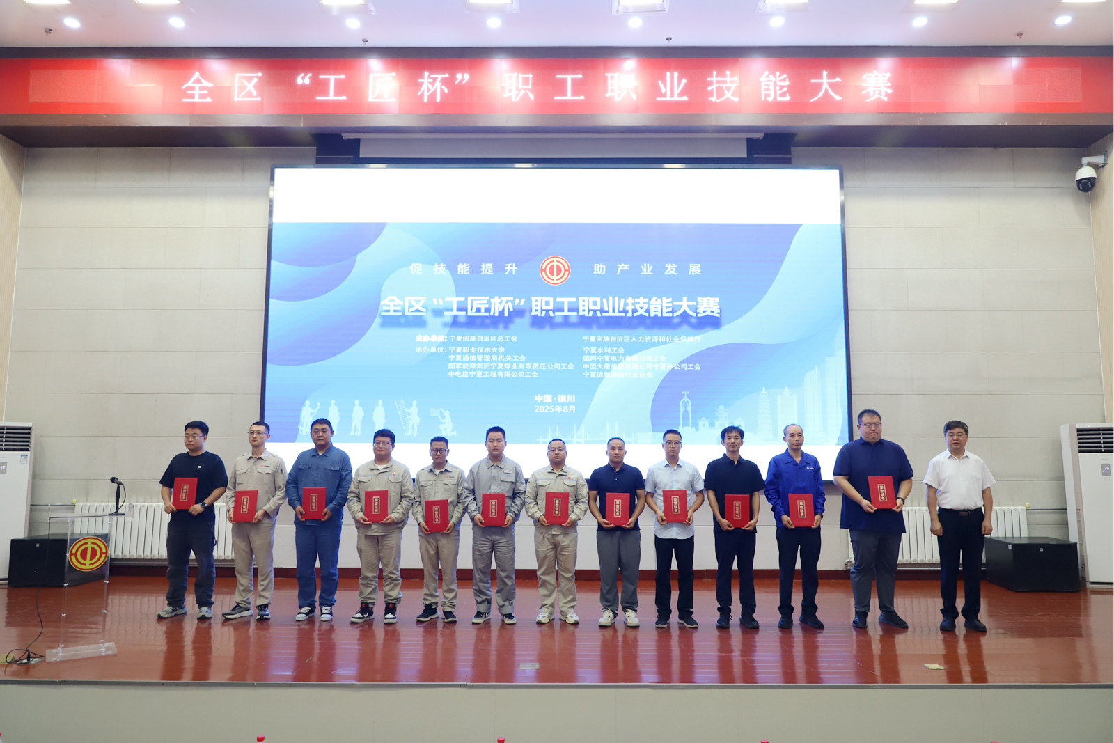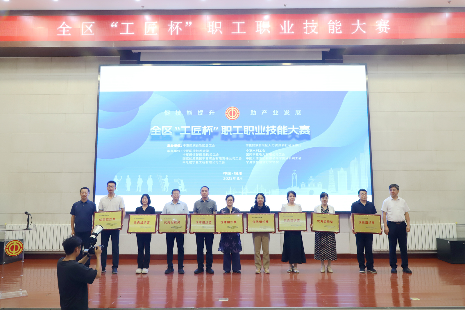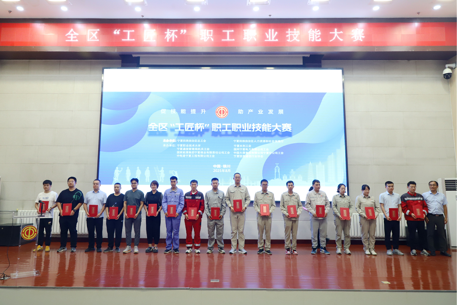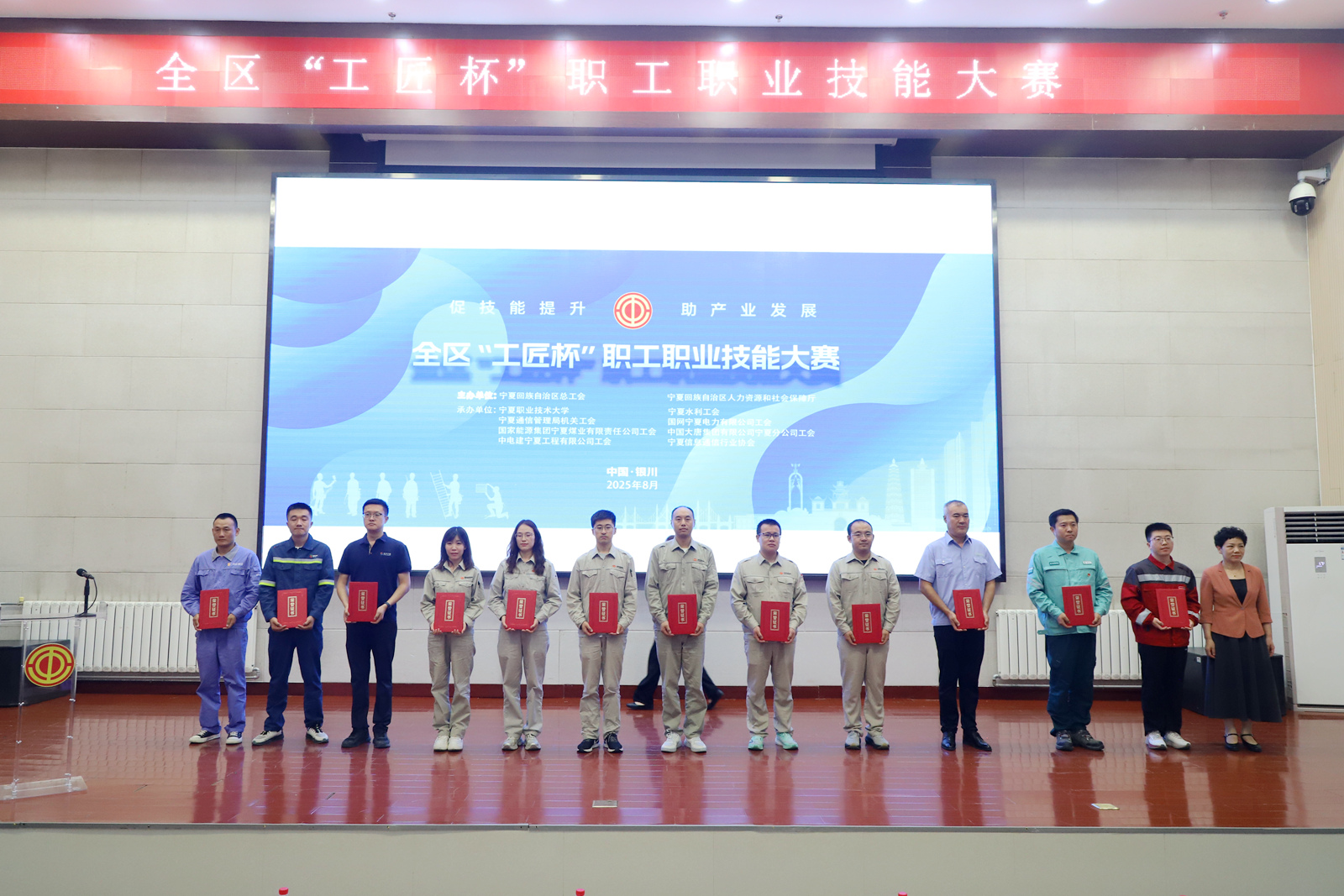 宁夏新闻网讯(记者 胡俊 文/图)8月20日,由宁夏总工会、人社厅共同主办,宁夏职业技术大学、宁夏水利工会、国网宁夏电力有限公司工会等单位联合承办的全区“工匠杯”职工职业技能大赛决赛闭幕式在宁夏职业技术大学举行。大赛自2025年4月启动以来,经过预赛、选拔赛、决赛比拼圆满落幕。