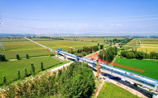 8月20日,银巴铁路银川西特大桥跨西干渠连续梁顺利合龙。记者 赵磊 摄