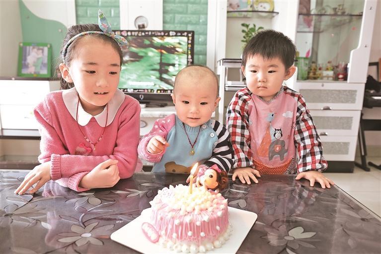 2016年1月11日,王奕婷(中)过周岁生日。 (记者王猛摄于2016年1月11日)