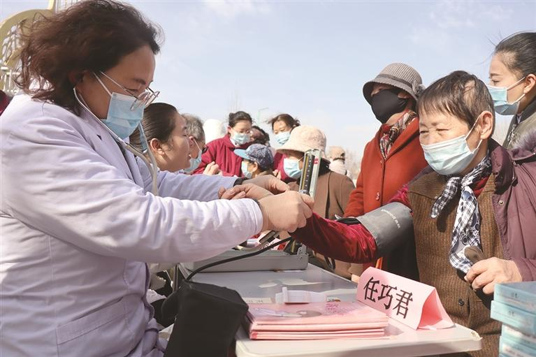 宁夏中西医结合医院巾帼志愿者在西夏万达广场开展义诊活动。