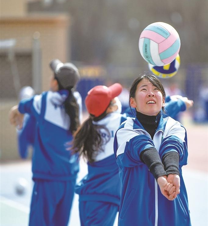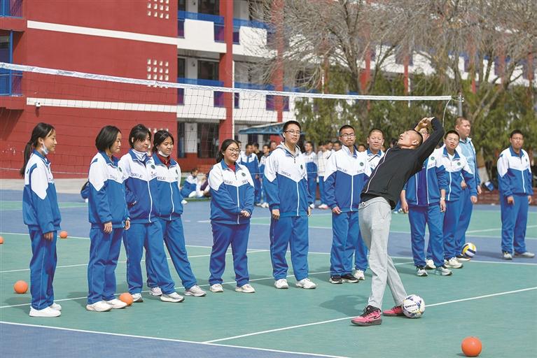 3月23日下午,春光明媚,银川市唐徕中学西校区的操场上,一派生机盎然。跑道上,上体育课的学生随着口哨的节奏一起跑步;绿茵场上,踢足球的学生激烈拼抢,进球后欢呼不断;篮球架下,一道道青春的身影在跳跃灌篮中赢得阵阵喝彩;排球区,学生们颠球练习认真又投入……