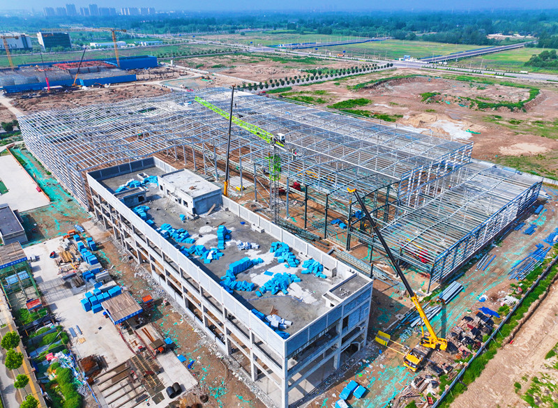 位于银川市西夏区的巨冈精工高端精密工业母机生产制造及智慧化工厂项目建设现场(7月26日摄)。该项目总投资5.2亿元,计划9月底完成竣工验收。项目达产后,将有力带动上下游产业链集聚发展,促进区域科技创新。记者 马楠 摄