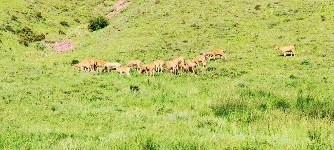 近日,一群麋鹿在宁夏南华山国家级自然保护区觅食。目前,南华山森林面积10余万亩,覆盖率达30%以上,植被覆盖度达95%以上。2024年南华山科考报告显示,保护区内维管植物达65科271属585种,新增6科65属159种,其中18种为宁夏首次记录;野生脊椎动物增至27目76科230种,新增秃鹫、雕鸮等国家重点保护动物;昆虫种类突破644种。宁夏日报报业集团全媒体记者 段春 见习记者 马对对 摄