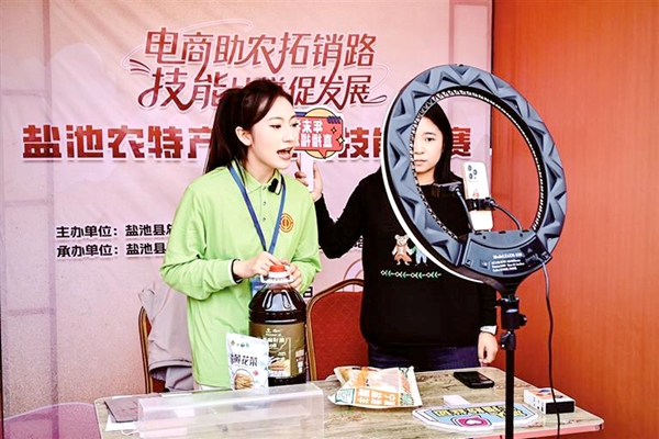 9月27日上午,在盐池县“丰收季·匠心赛”特色产业技能竞赛系列活动中,农特产品电商技能大赛总决赛正如火如荼地进行。30名参赛主播在镜头前各展所长,将盐池的滩羊肉、黄花菜、小杂粮等特产卖向全国。