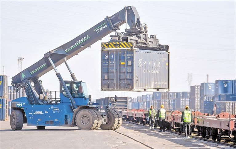 石嘴山保税物流中心,一列来自天津港的满载铁矿粉的列车驶入富海铁路专用线,工作人员操作天车转运集装箱。“中心与天津港、青岛港、上海港等沿海口岸互联互通,与策克、乌力吉、霍尔果斯等内陆口岸合作,开通了中越、中印、中欧班列。”石嘴山经济技术开发区管委会主任助理郭振宏介绍,今年截至目前,进入石嘴山保税物流中心的货物货值达1.89亿元,较上年同期增长81.73%。