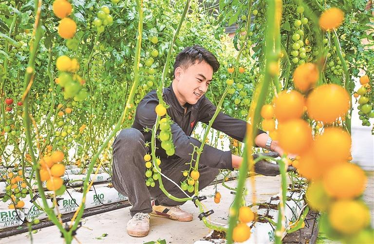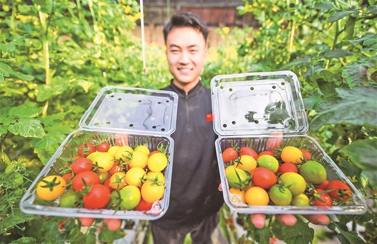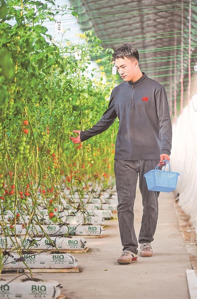 王议闯采摘小番茄。
