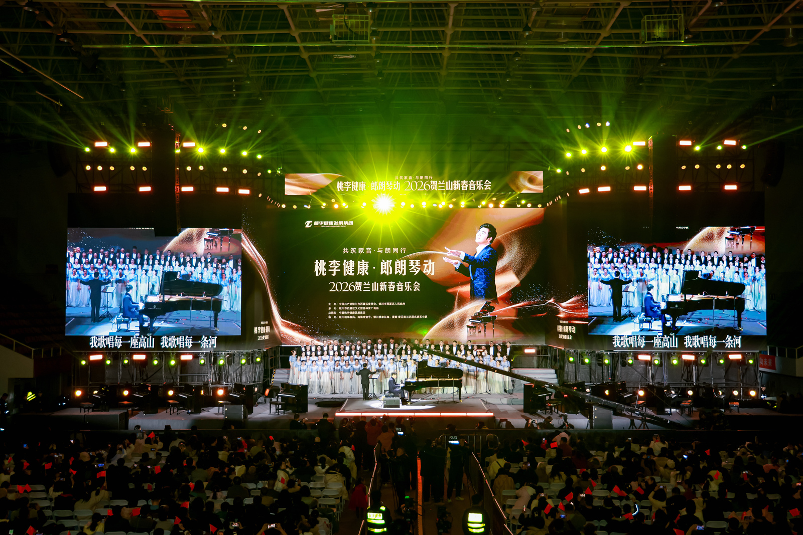宁夏新闻网讯(记者 胡俊 文/图)1月21日晚,银川体育馆内座无虚席,国际钢琴大师郎朗的指尖第四次在贺兰山脚下奏响琴音,“桃李健康·郎朗琴动2026贺兰山新春音乐会”为5000余名市民群众带来一场浸润人心的艺术盛宴。