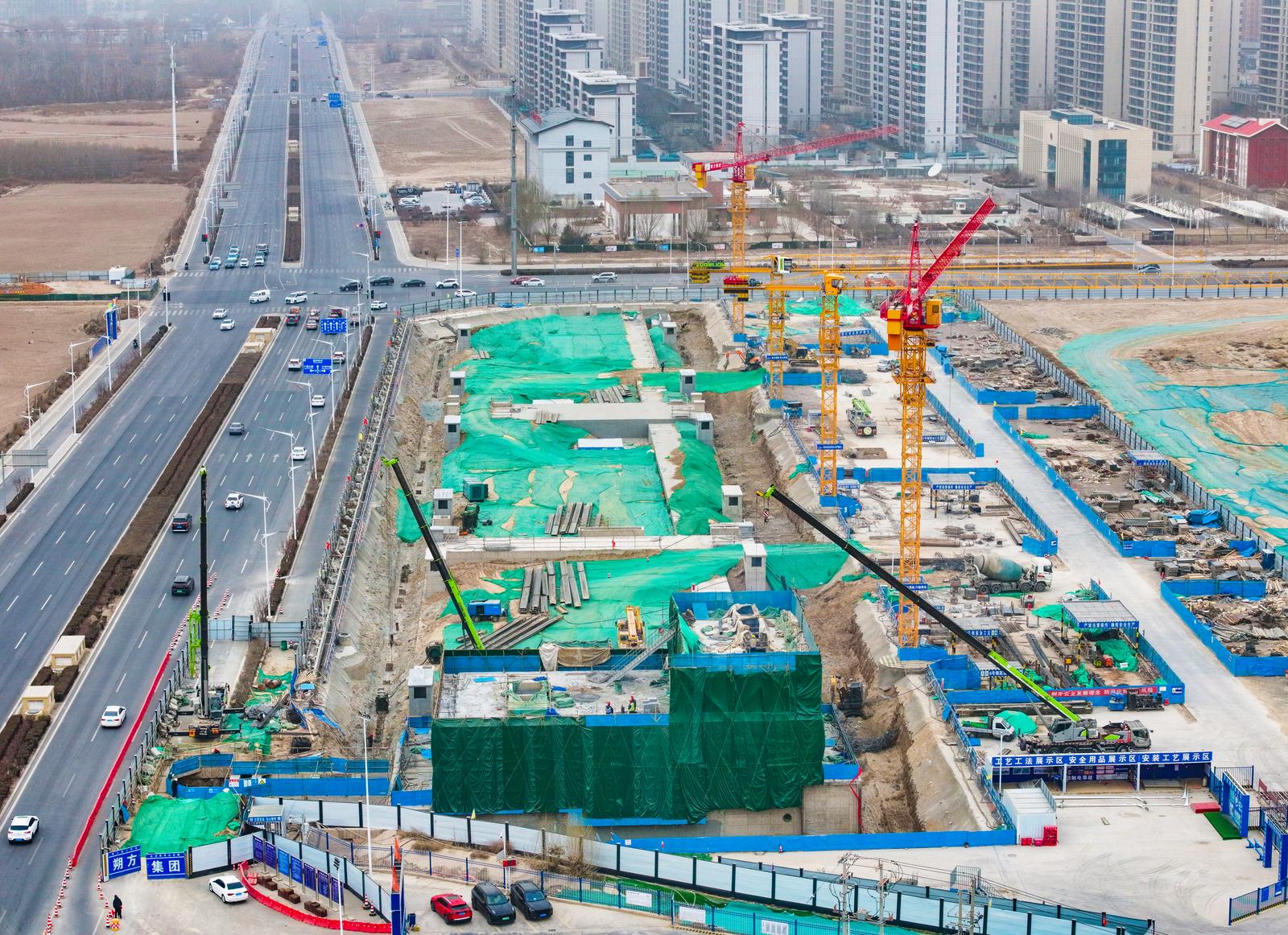 银川金凤区南部调蓄水池工程寒风中全速推进