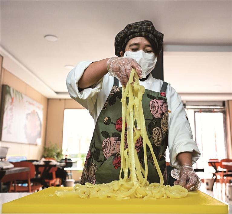 街坊四邻一尝,竖起大拇指:“这味道,扎实!”“是咱们海原的味儿!”冯秀英听着,脸上笑出了褶子。那时,一碗凉皮卖三毛钱。冯秀英推着吱呀响的架子车沿街叫卖,成了不少海原人活色生香的记忆。