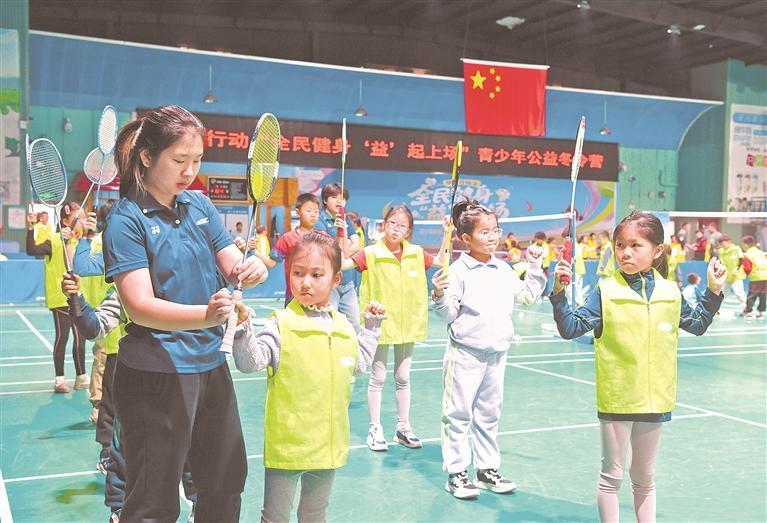 2月3日,教练员正在指导初学者练习羽毛球握拍。当日,中国体育彩票微光行动之“全民健身‘益’起上场”青少年乒乓球、羽毛球、网球公益冬令营正式开营,360名7至17周岁的青少年将在专业教练的免费指导和培训下学习运动技能。(宁夏日报报业集团全媒体记者 高晓刚 摄)