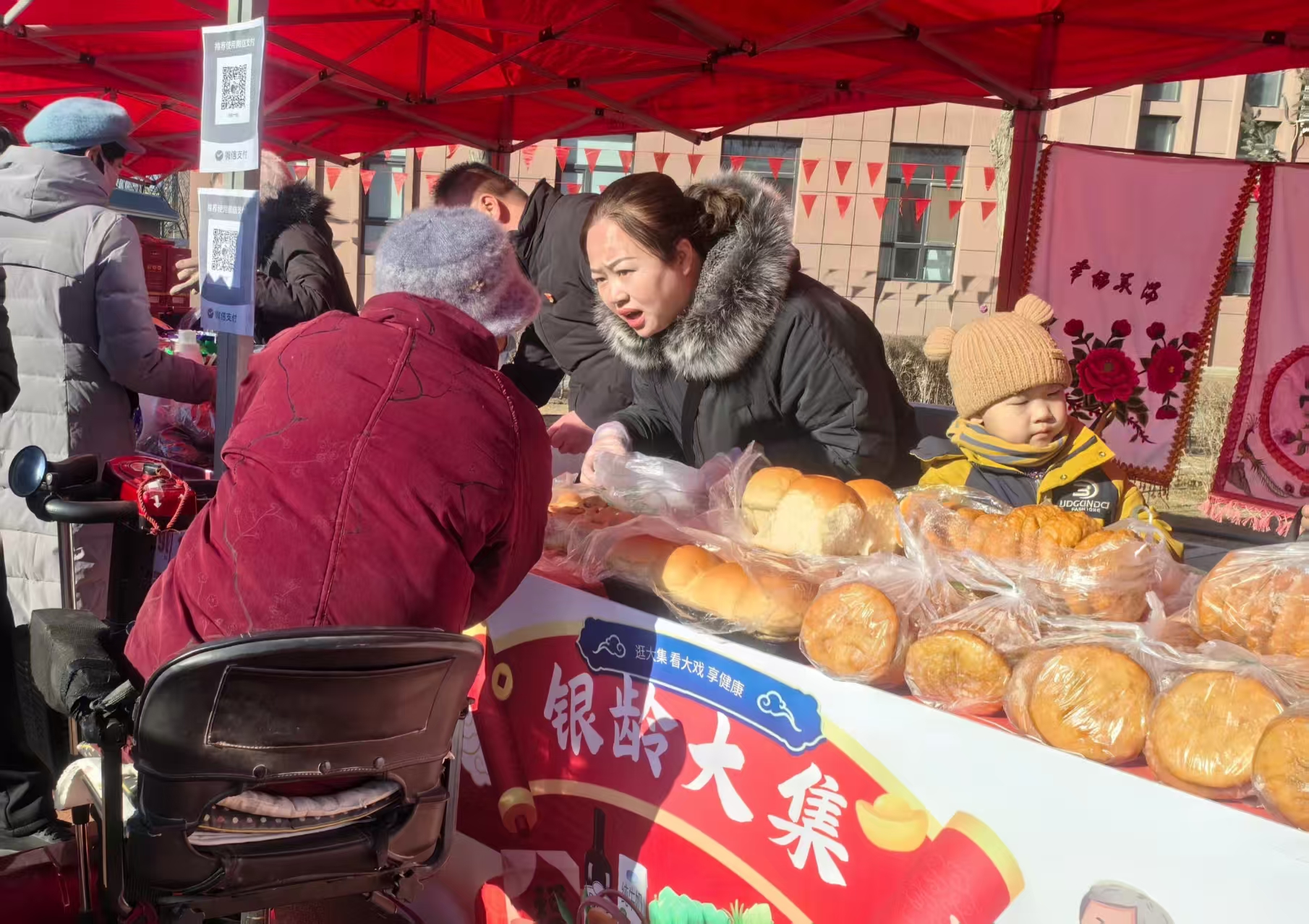 集市现场,春联、非遗手作、特色食品等“年味好物”琳琅满目;中医义诊、养老政策咨询、公益理发等服务贴心周到。文艺汇演环节,老年朋友们纷纷登台,歌曲、快板、舞蹈、秦腔、旗袍秀等节目精彩纷呈,展现“银发族”的活力与风采。下午还设有戏曲专场与互动体验活动,持续为老年人送上欢乐。