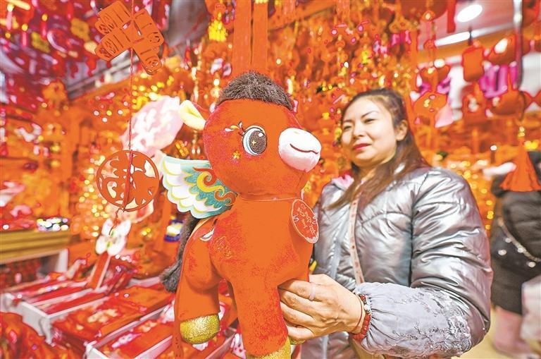 走进各大商超不难发现,货架上摆满了印有奔马图案的春联、造型可爱生动的玩偶马等年节商品,节日的喜悦就这样悄然融入日常生活的点滴之中。