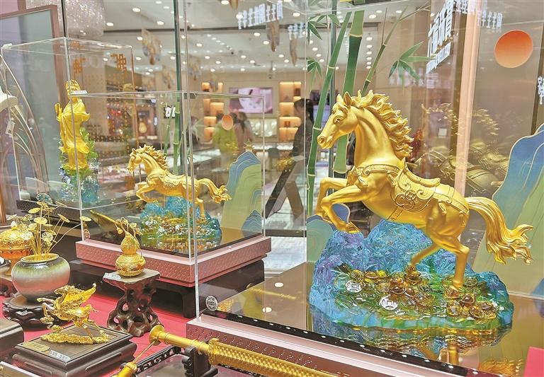 金饰店内,“马”也成为热销主题。橱窗里,造型各异的骏马金饰熠熠生辉,或昂首奋蹄,或腾空飞跃,寓意龙马精神、马到成功。许多市民选购马形金饰作为新年礼物,既图个好彩头,也为家人送上一份沉甸甸的祝福。