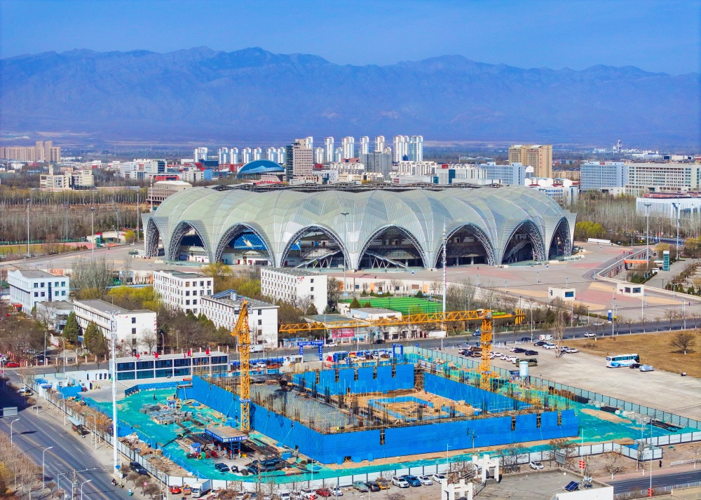 3月20日,贺兰山全民健身中心项目主体结构与配套工程正在施工建设中。作为我区首个集综合健身与室内冰雪运动于一体的公共健身场馆,项目内设标准冰场、羽毛球场、乒乓球场、器械健身房、健身操房、体质监测室等功能空间,今年10月将建成投用。记者 马楠 摄