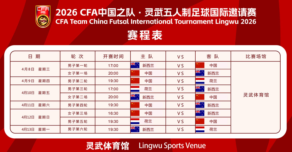 本次赛事是经中国足球协会批准的标杆性品牌体育赛事。参赛阵容亮点十足,包括中国男、女五人制足球队,新西兰男、女五人制足球队以及荷兰男子五人制足球队。赛事将持续至4月13日,面向公众免费开放。