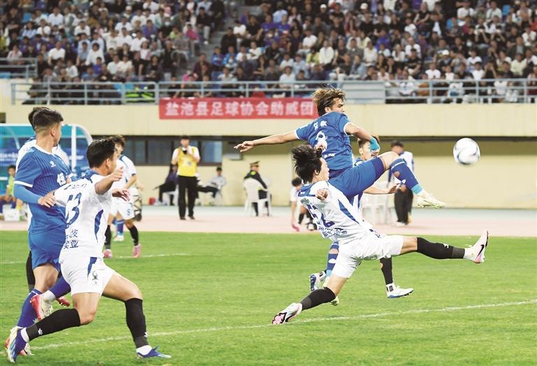 随着主裁判一声哨响,两支球队展开交锋。场上球员迅速进入状态,带球突破、起跳争顶、倒地铲球……激烈的对抗引来球迷阵阵欢呼。上半场双方你来我往、战况胶着,每一次攻防转换都扣人心弦,但直至上半场结束,双方均未叩开对方球门。下半场易边再战,杭州临平吴越队不断发起猛攻,开场8分钟,连续获得角球,在球门前的混战中攻入一球,1比0取得领先。随后,宁夏平罗恒利队在加固防守的同时频繁发起攻势,在对方禁区不断制造威胁,意欲扳平比分,无奈在比赛尾声被对手再下一城,将比分定格在0比2。