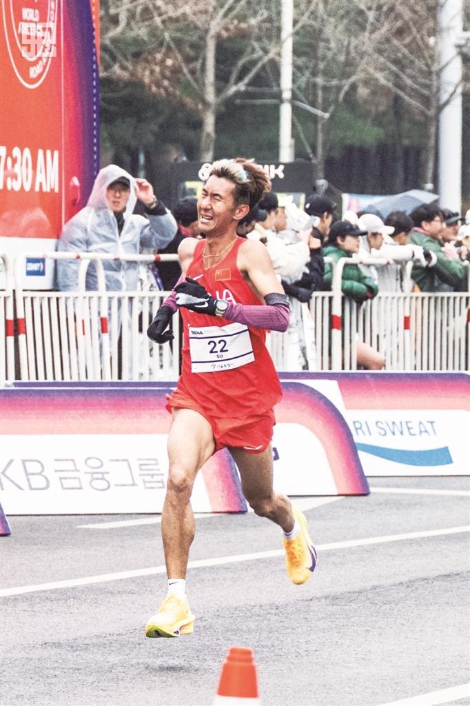 3月15日上午,首尔马拉松终点线旁,刚刚完成冲线的何杰扯着嗓子,一遍遍大声呼喊“苏飞”,为正在冲刺的师弟加油。