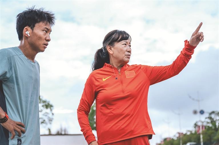宁夏马拉松运动员在肖丽的指导下训练。