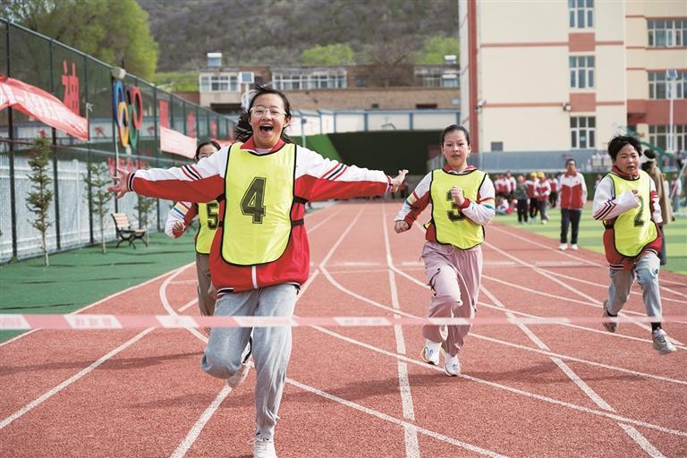运动会上,孩子们短跑夺冠瞬间。
