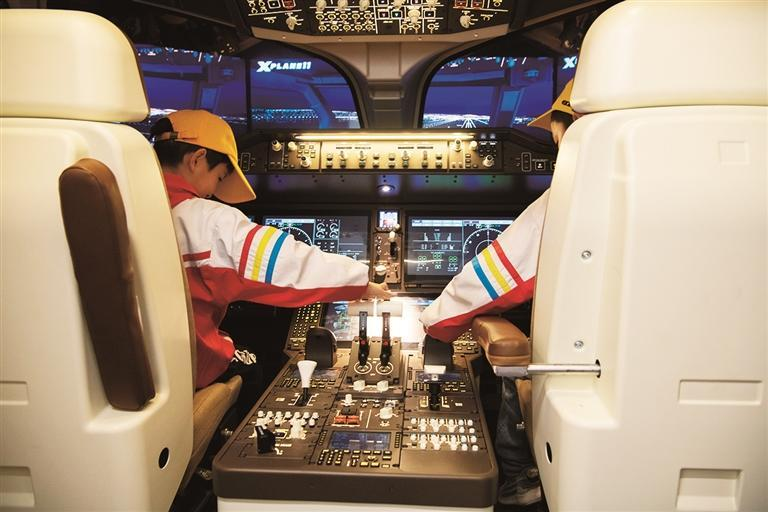 孩子们在飞机里当了会机长。