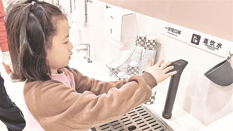 小朋友在公共场所取用直饮水。